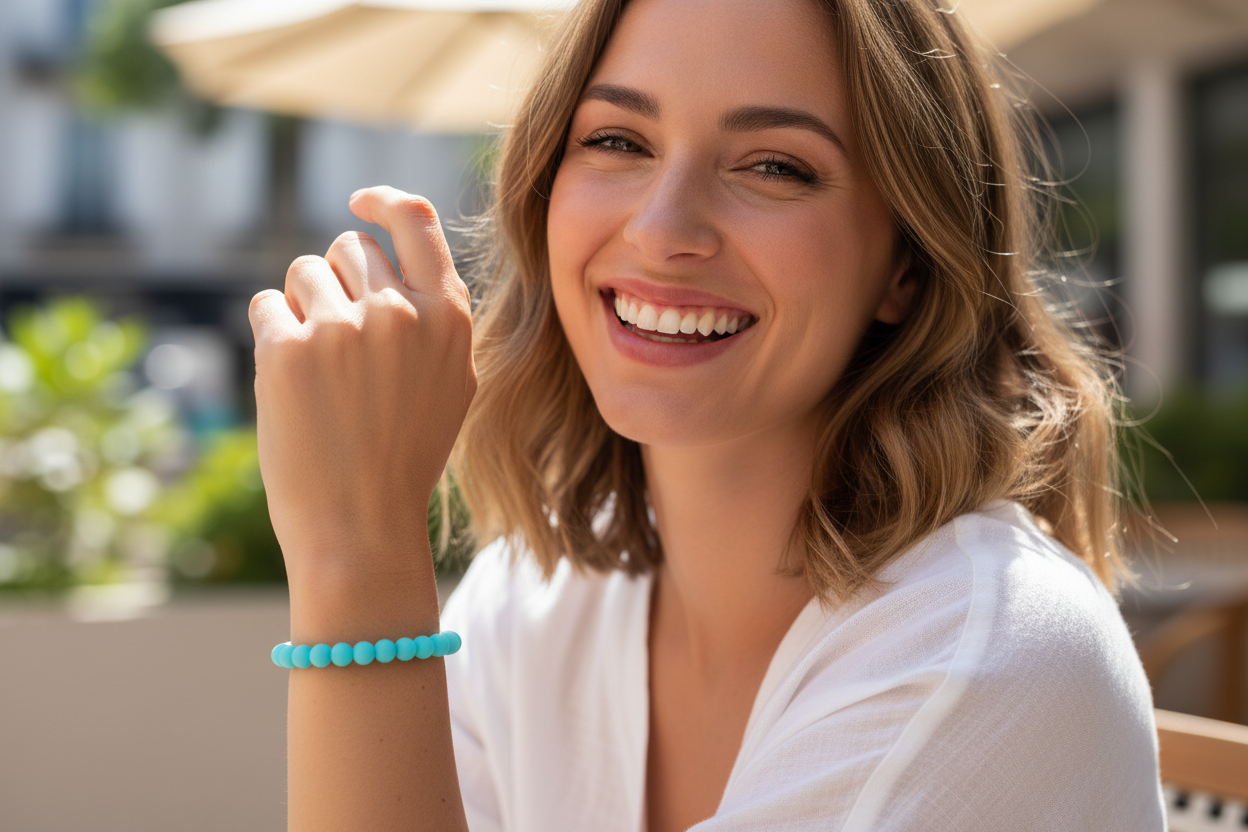 Scuba aqua stretchable, beaded bracelet in 9MM.