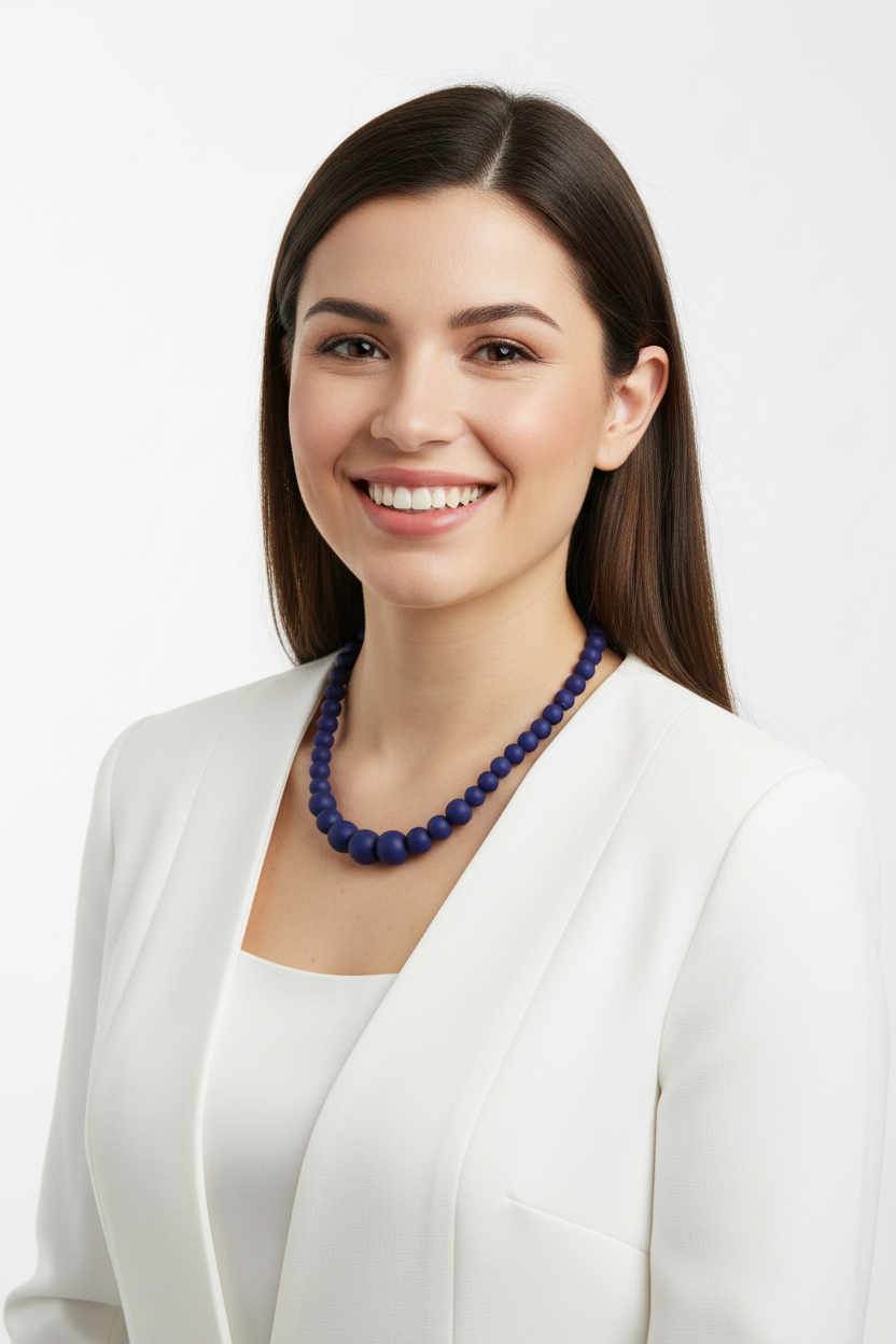 Navy blue silicon rubber beaded necklace. Beads range in size from 9mm to 15mm.