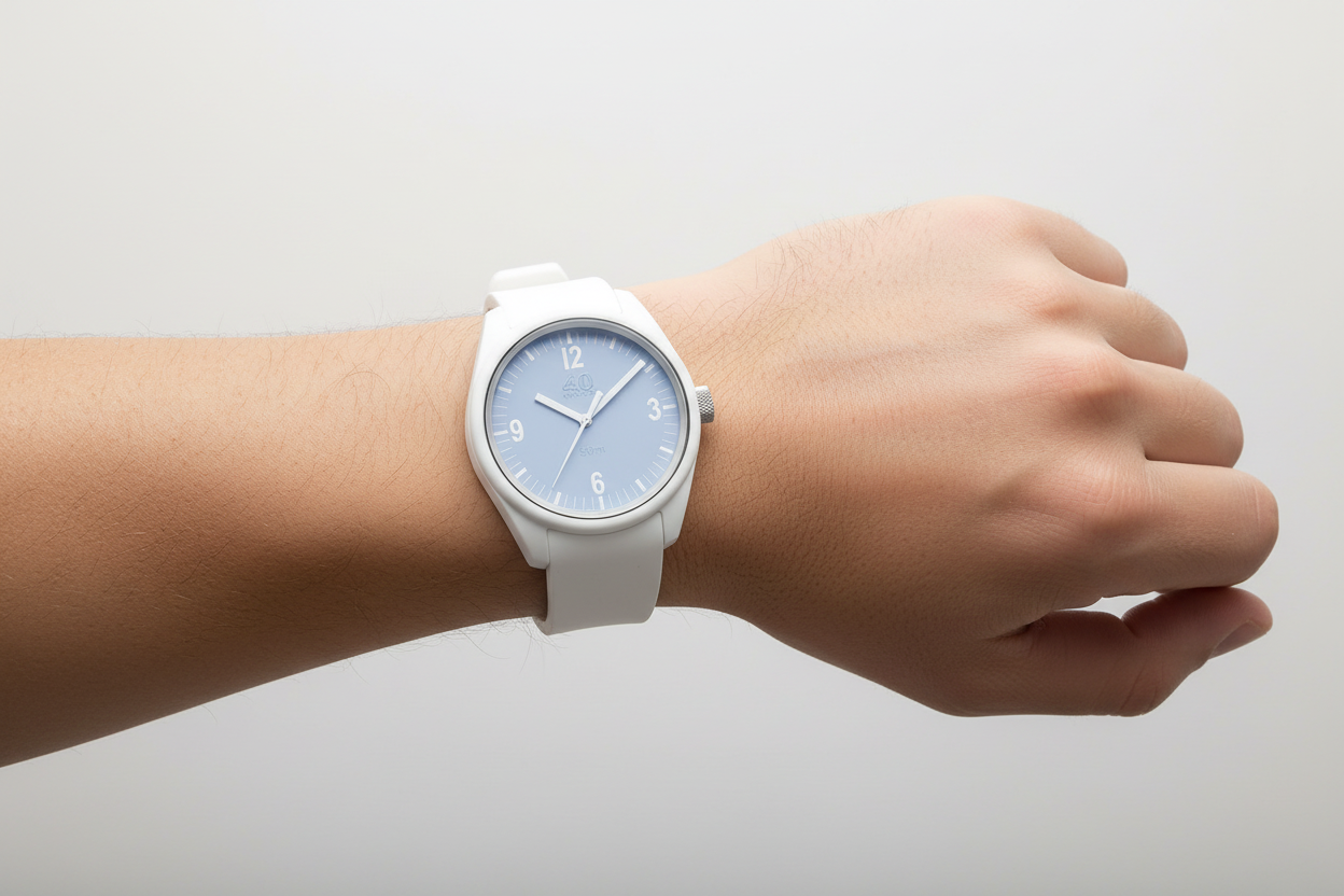 White Silicone Rubber strap with White loop, White buckle