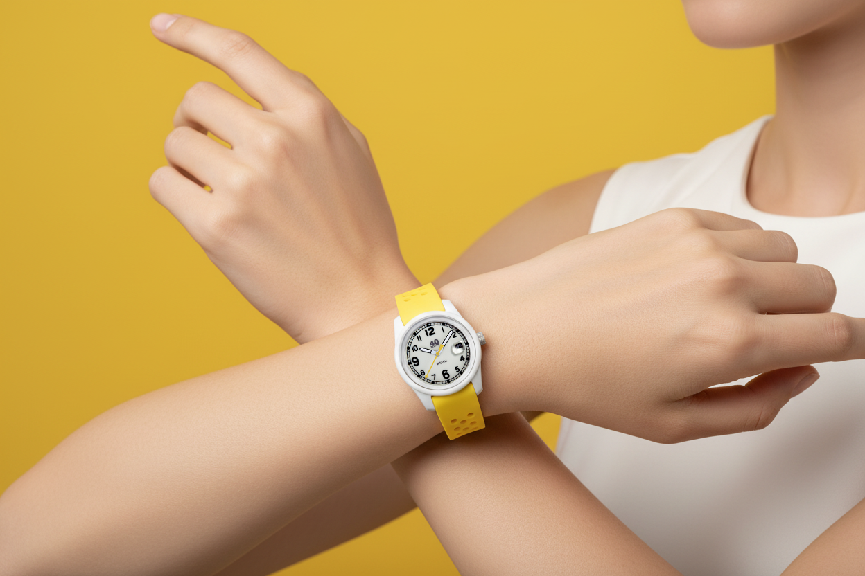 Yellow Silicone Rubber "holy" strap with white loop, white buckle