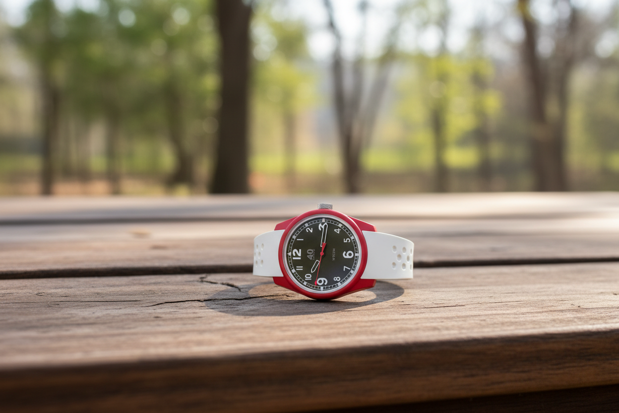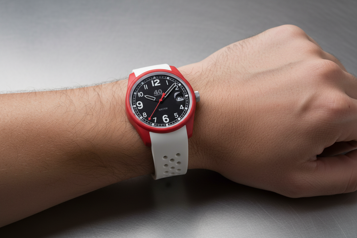 White Silicone Rubber "holy" strap with Red loop, Red buckle