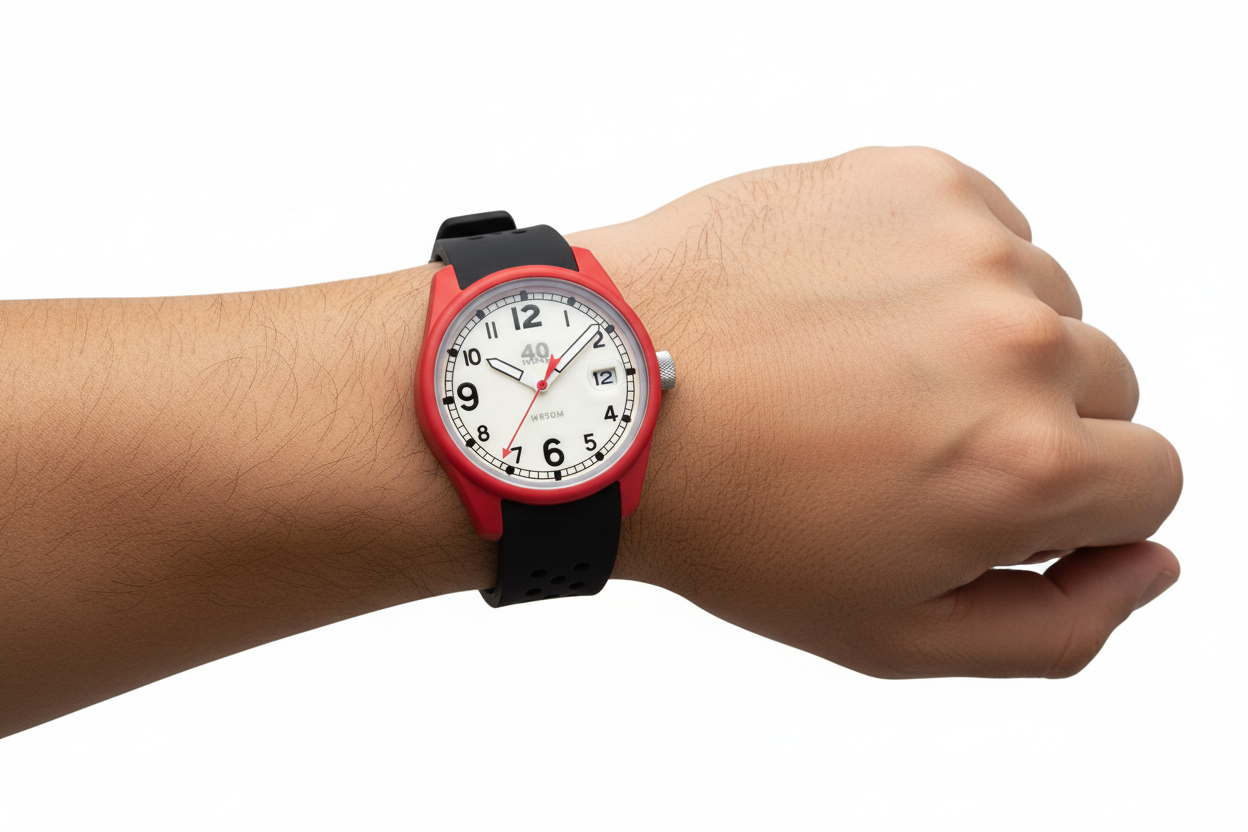 Black Silicone Rubber "holy" strap with Red loop, Red buckle