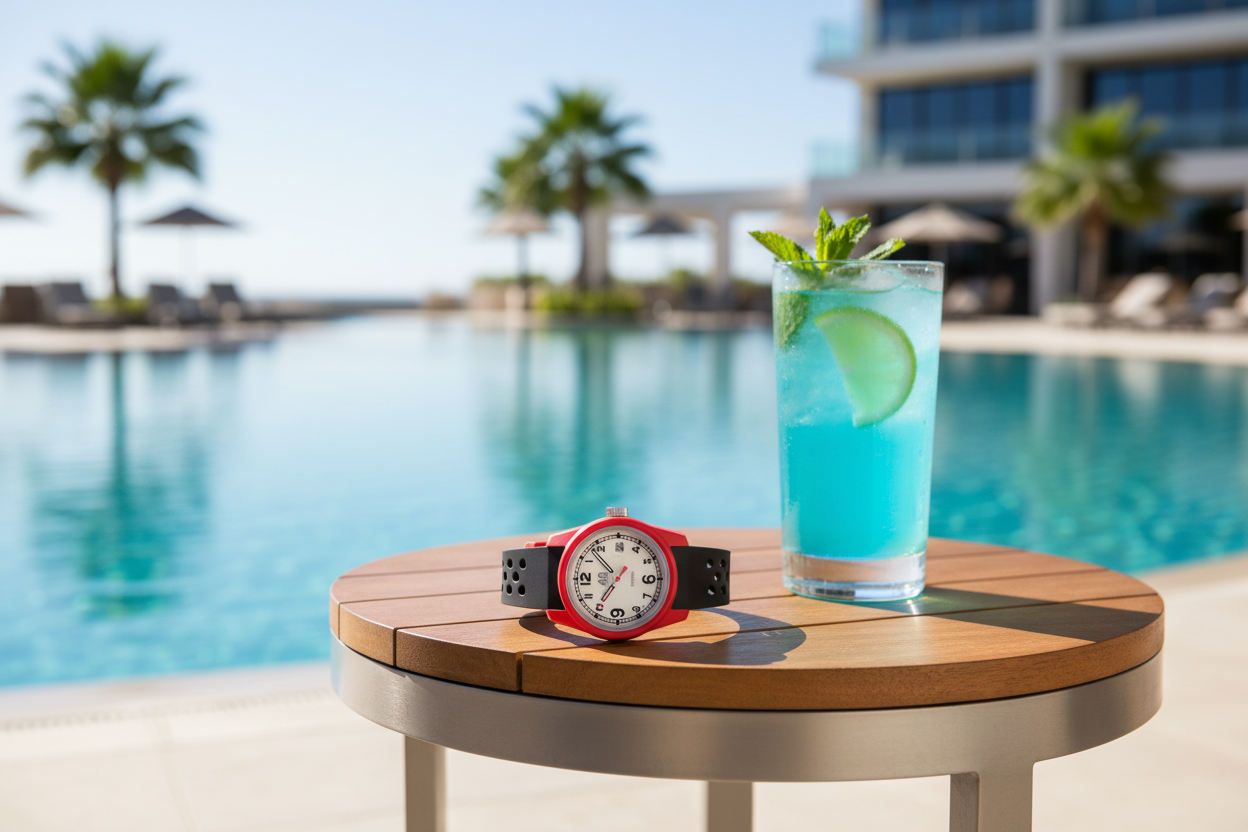 Black Silicone Rubber "holy" strap with Red loop, Red buckle